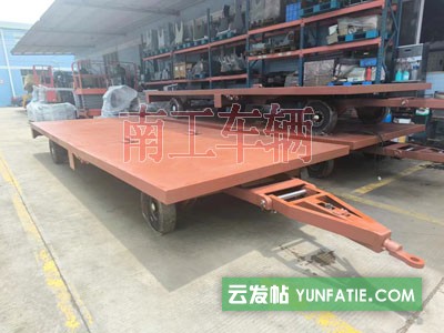 3.5吨平板拖车 拼接款牵引平板车南工车辆长期非标订制,用于工厂、物流、港口运输集装箱的等场地短途中转运输,载重大,成本低。
