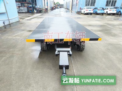 6吨平板车 全挂式平板拖车南工车辆长期非标订制,具有载重大、成本低,操作简单等特点,用于工厂车间、物流港口、机场码头等场地短途中转运输货物。